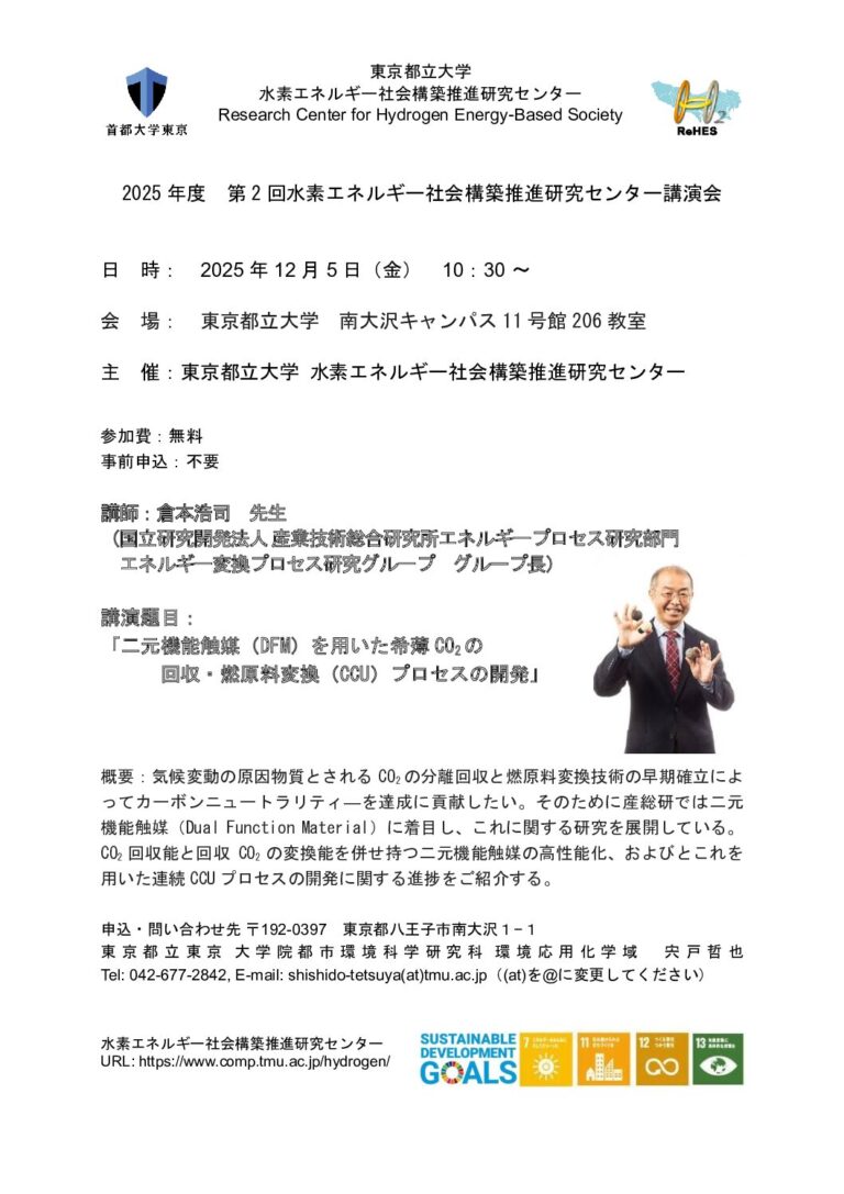 主 催: 東京都立大学 水素エネルギー社会構築推進研究センター